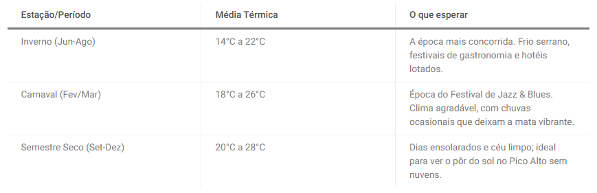 Embora Guaramiranga seja sempre mais amena que o litoral, a sensação real de “inverno” acontece no meio do ano. Segundo dados locais, a neblina é um charme constante nas noites da serra, criando cenários dignos de cartão-postal.