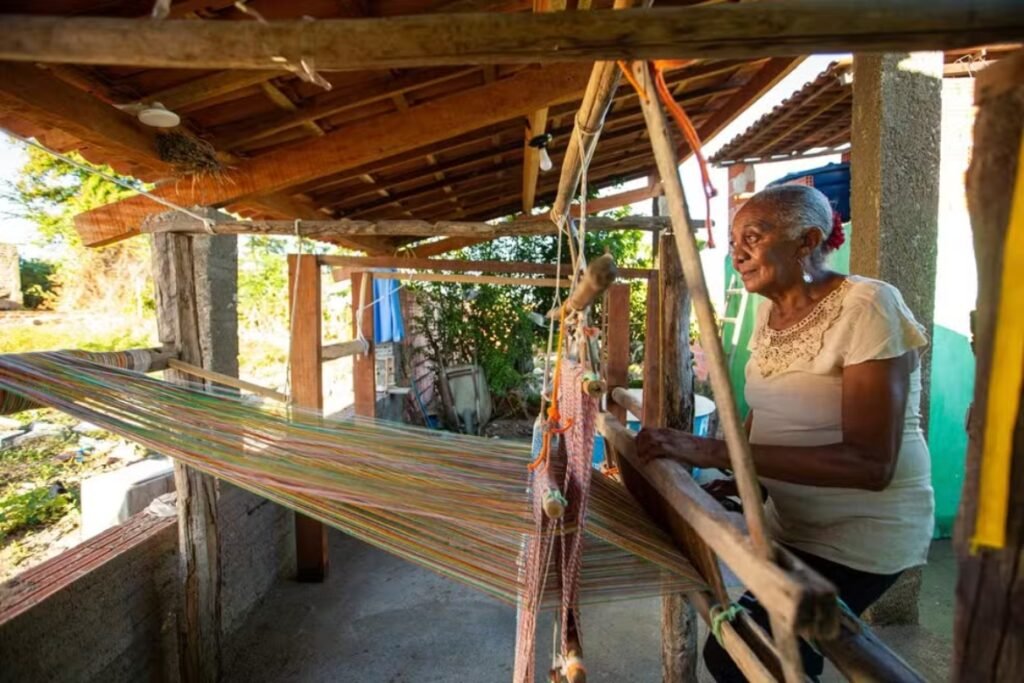 A poucos metros dali, outro museu orgânico preserva saberes ancestrais: o Museu Casa Oficina de Dona Dinha. Raimunda Ana da Silva, de 74 anos, é mestra na arte de tecer redes de dormir — símbolo da cultura nordestina com raízes indígenas.